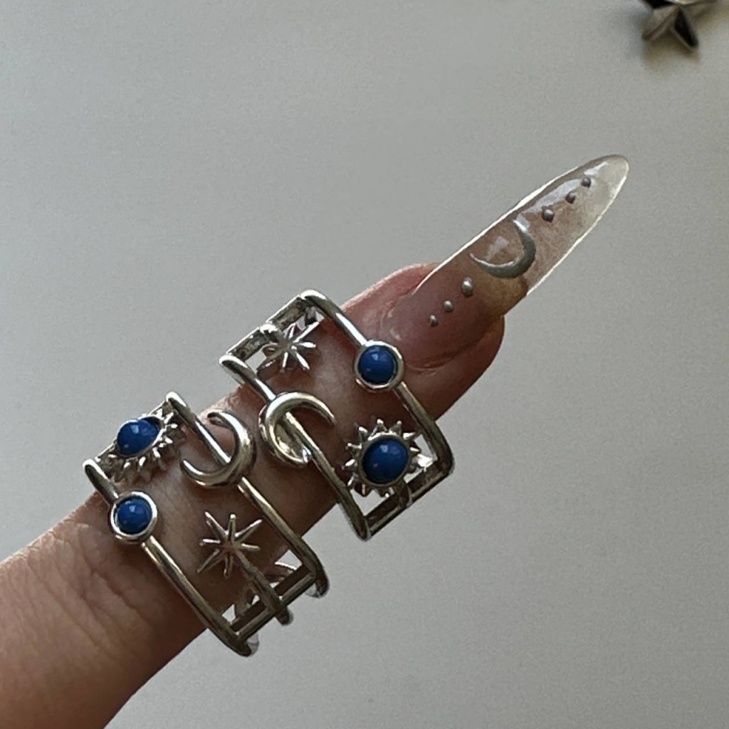 انگشتر فری سایز ماه و ستاره و سنگ سورمه ای .