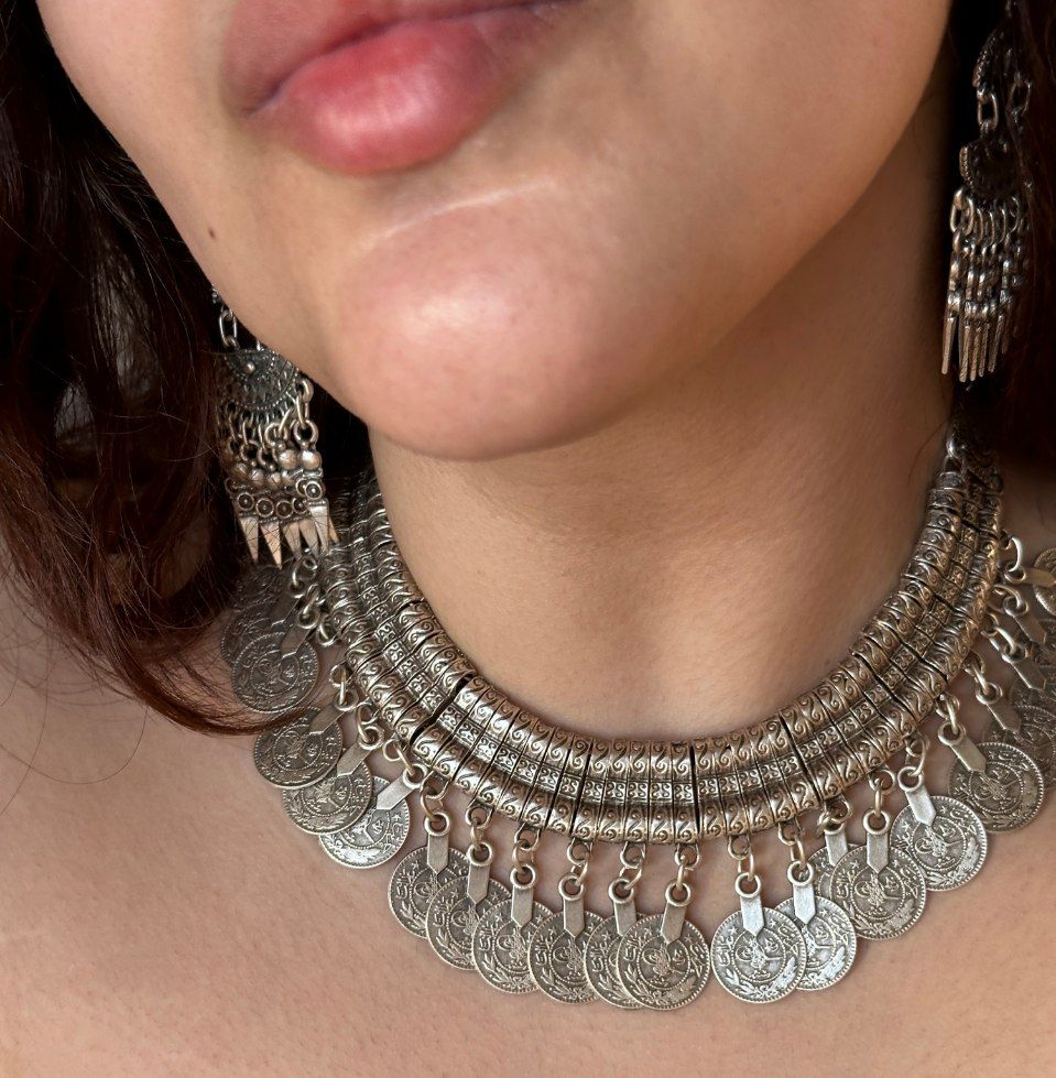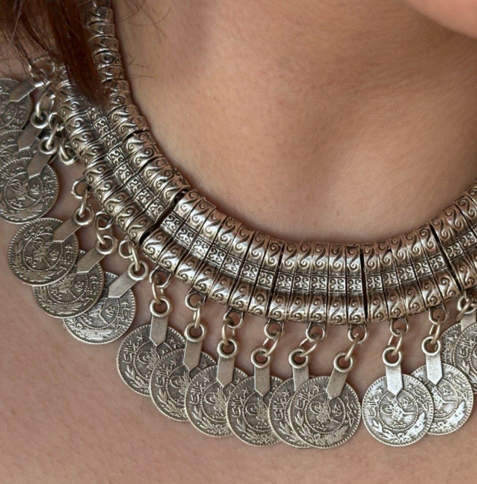 گردنبند ورشو ترک مس با ابکاری نقره پرکار