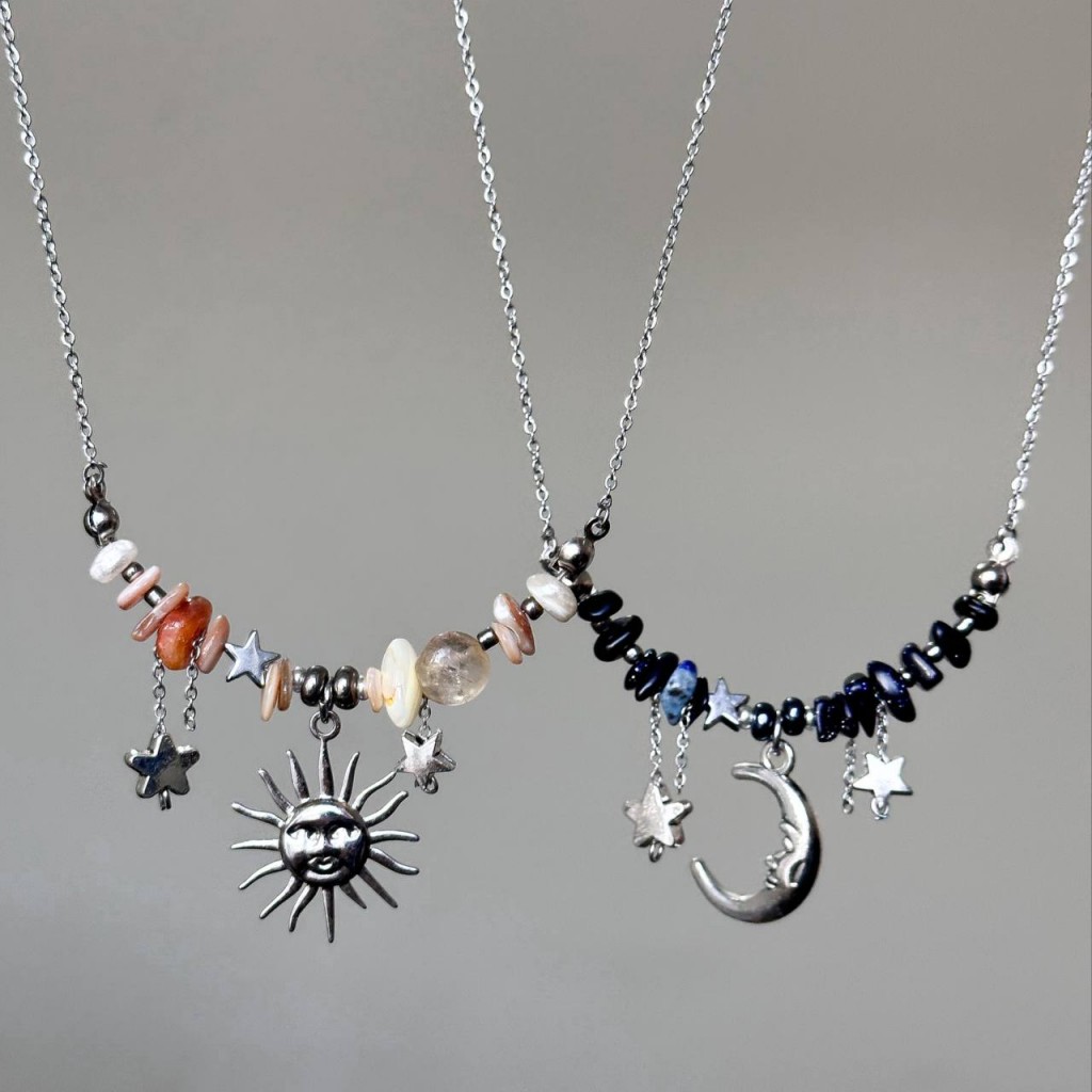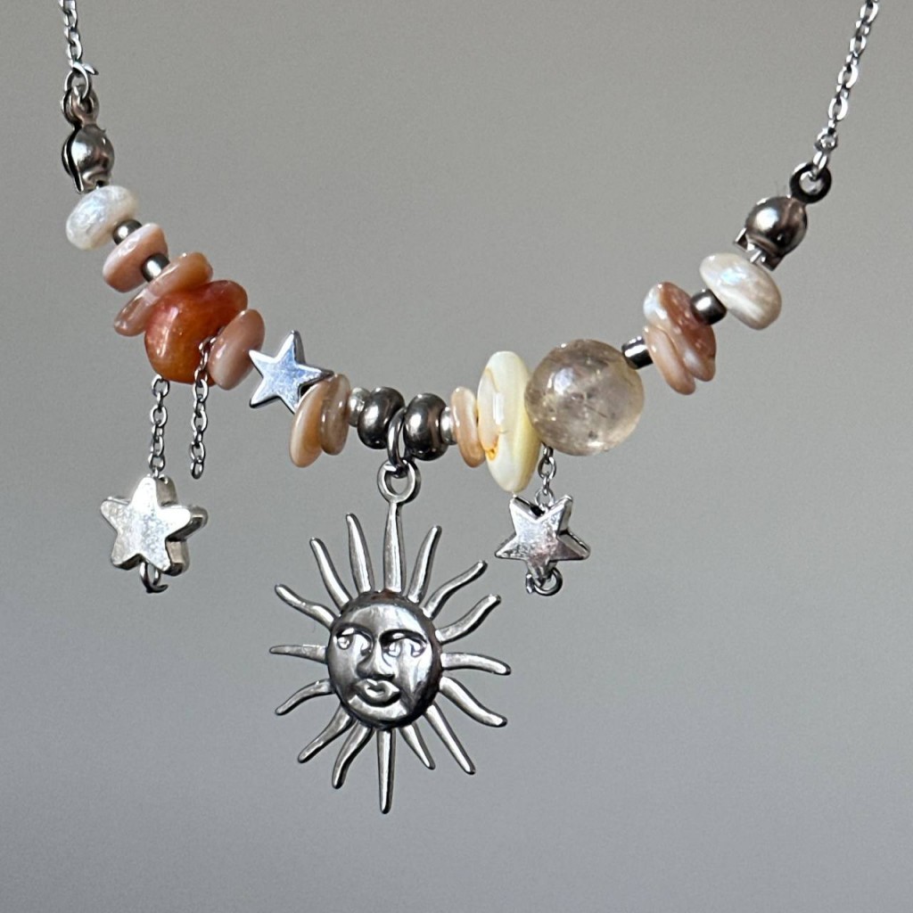 خورشید : سنگ سیترین + امبر + صدف طبیعی یراق استیل