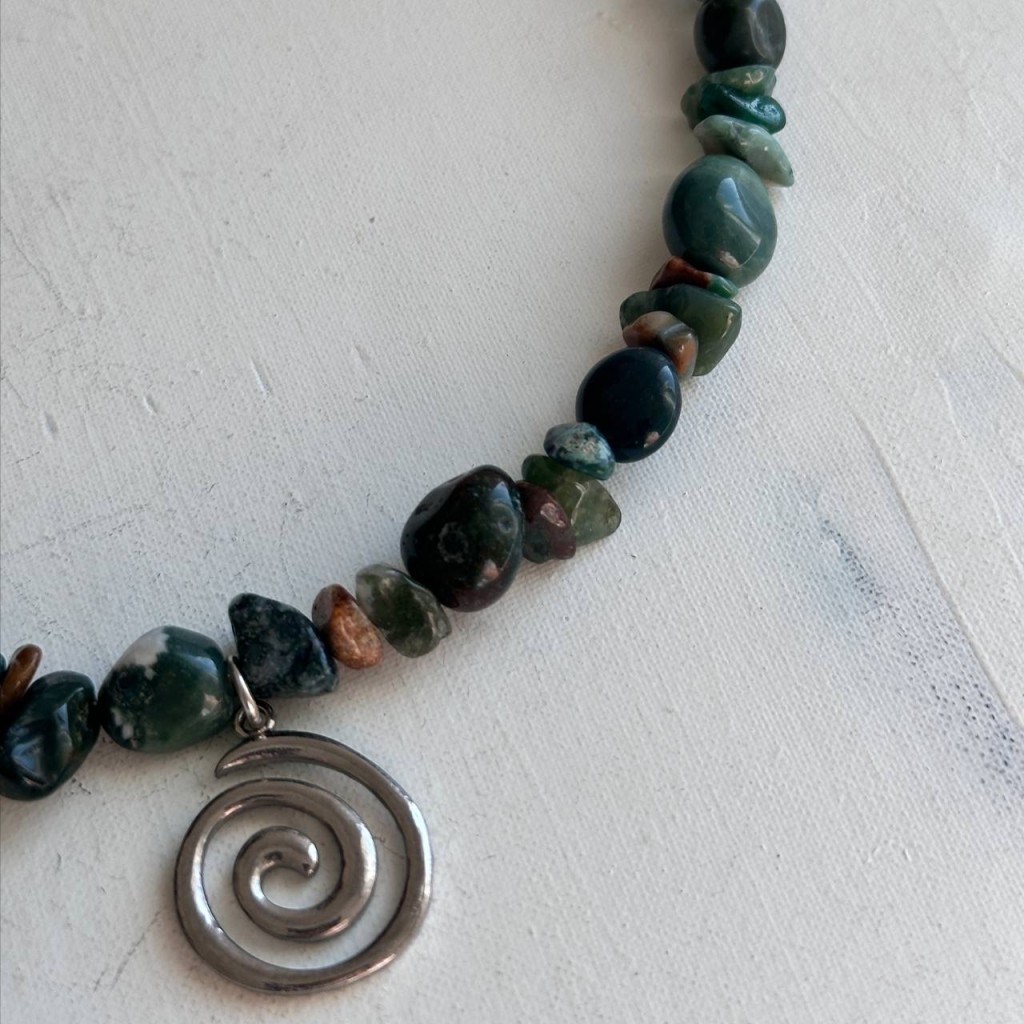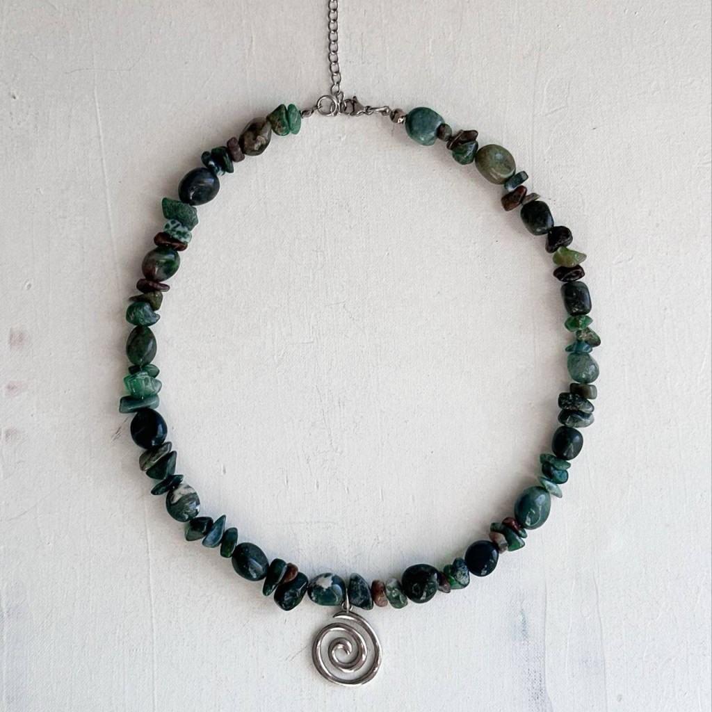 گردنبند تمام سنگ پرکار : ترکیب سنگهای عقیق. عقیق خزه ای . جید